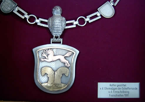 bei allen offiziellen Anlässen tragen möge. Diese Kette wurde aus Silber gearbeitet. Zwischen den einzelnen Kettengliedern