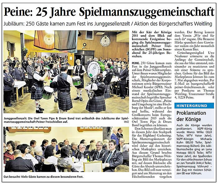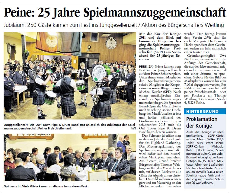 Am Samstag, dem 2. April 2011 feierte die Spielmannszuggemeinschaft Peiner Freischießen ihr 25-jähriges Bestehen.