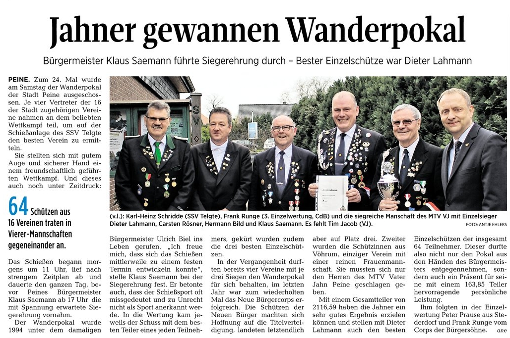 MTV Vater Jahn Peine erringt Stadtpokal 2017